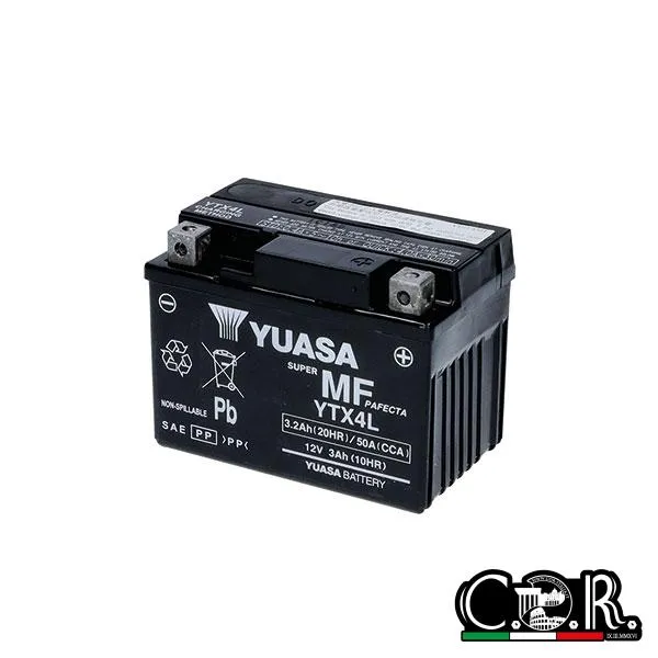 BATTERIA YUASA YTX4L-BS (SIGILLATA CON ACIDO A CORREDO) 12V/3AH